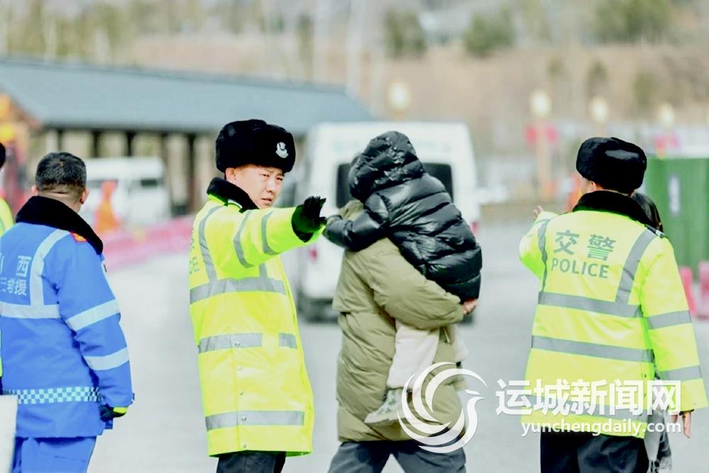 正月初五(2月2日)清晨7点,解放南路(跨湖段)上已亮起闪烁的警灯。执勤民辅警哈着白气,将反光锥桶逐个摆放在需要分流的路段。随着当日9时许首批旅客的到来,他们的对讲机开始频繁响起:“车流量增大,汇报下各自的情况。”此时,运城盐湖景区外,盐湖交警大队的民辅警在拥堵路口人工引导车流,他们手中的荧光指挥棒划出流畅弧线,将赶早逛景区需要停车的车辆与路过去运城关公故里文化旅游景区的车队有序分流。