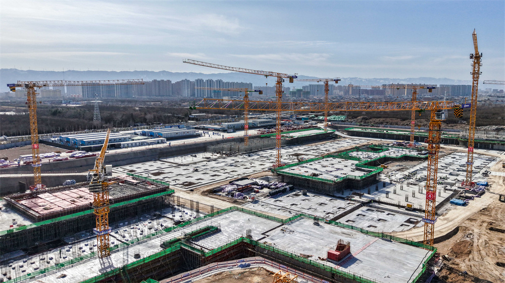 2月8日,运城市人民医院建设项目(一期)工地,施工人员抢抓进度加紧施工。