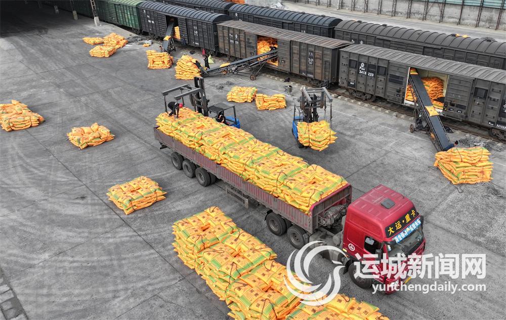 2月6日,位于稷山县的潞安化工丰喜泉稷能源有限公司铁路专用线上,工人在装运化肥。 特约摄影 栗卢建 摄