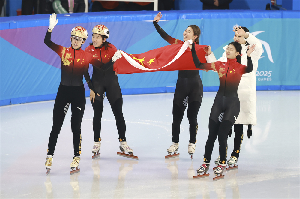 当日,第九届亚冬会短道速滑女子3000米接力A组决赛在哈尔滨举行,中国队夺得冠军。 新华社记者 许雅楠 摄