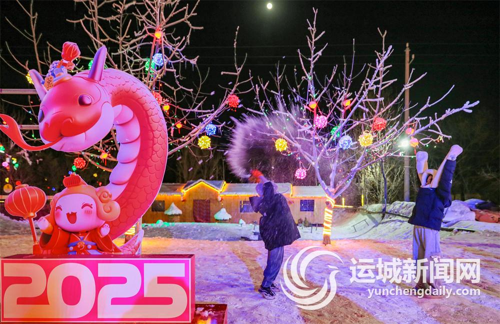 “打造雪乡的初衷是让运城人不出远门就能看到雪乡的场景。我们以东北农村风情为主,以冰雪文化为源泉,结合灯光亮化、外部舞台等元素,上新了‘古城雪乡’冰雪嘉年华项目。前几天,工人师傅们昼夜加班加点对雪乡场景进行了最后的装饰。”该项目负责人宁峰说,“除了雪乡,游客来了之后,还能玩雪圈、雪地坦克,看东北二人转表演,品尝铁锅炖鸡、农家饭,还有铁板鱿鱼、糖葫芦等各种小吃美食。”