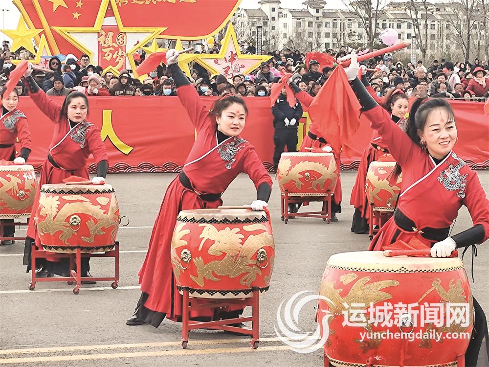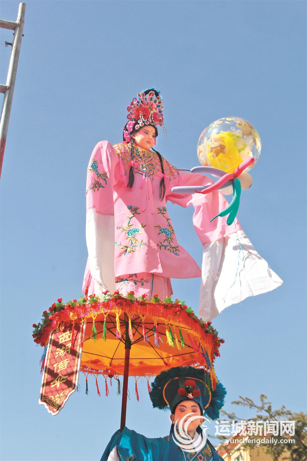 当天,河津市僧楼镇带来的表演分为“河汾门下”“风追大唐”“时代雄风”“春和万象”4个篇章,通过原创古风舞蹈、武术、高跷斗舞、转花灯等多种表现形式,将传统文化与现代艺术巧妙融合;河津市小梁乡不甘示弱,马拉鼓车、炫酷摩托车队表演、花车舞狮、纸马旱船、打花鼓等社火节目轮番上演。其中,马家庄抬阁惊艳亮相,数米高的架子上,身着彩服保持固定姿势的儿童卖萌搞怪,惹得大家捧腹大笑。