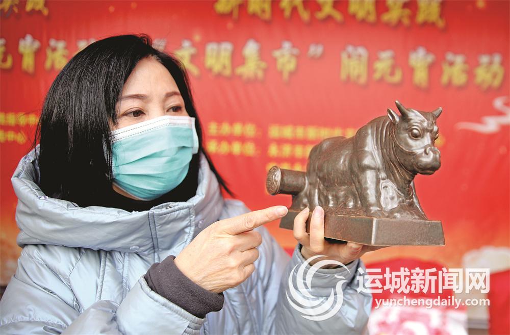 “这个黄河大铁牛做得真像,造型、颜色就和真的一模一样。”紧邻麦秸画的,是由蒲州陶制作的文创产品。据介绍,蒲州陶是中国传统陶瓷工艺中的重要组成部分,具有悠久的历史和独特的艺术价值,其精湛的烧制工艺和古朴典雅的造型,是展示永济文化的重要载体。