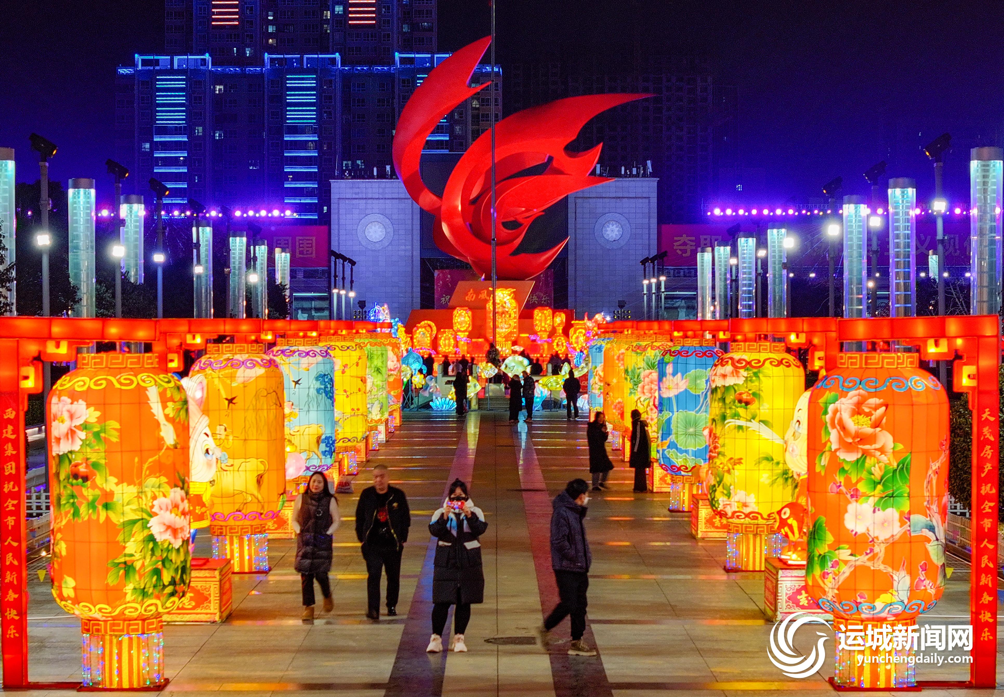2月11日晚,市民在中心城区南风广场观赏花灯。