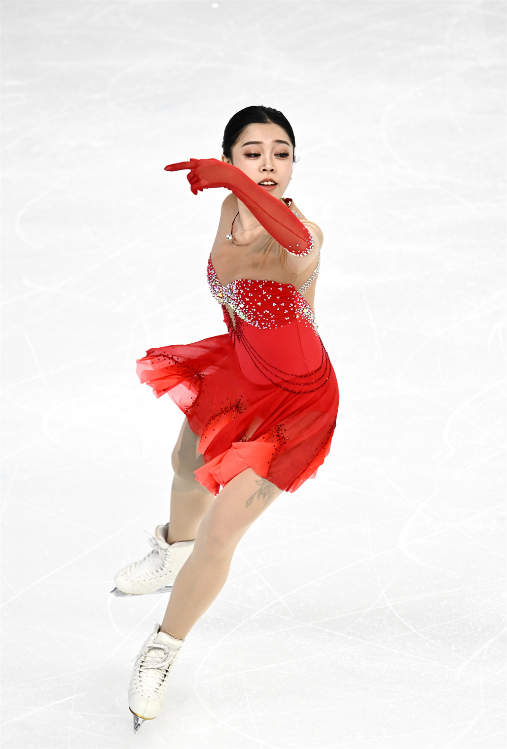 2月13日,中国香港选手苏怡在第九届亚冬会花样滑冰项目女子个人滑自由滑比赛中。