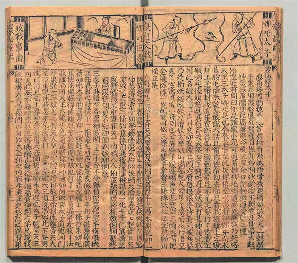 明刊本《新镌全像西游记传》中哪吒大战孙悟空