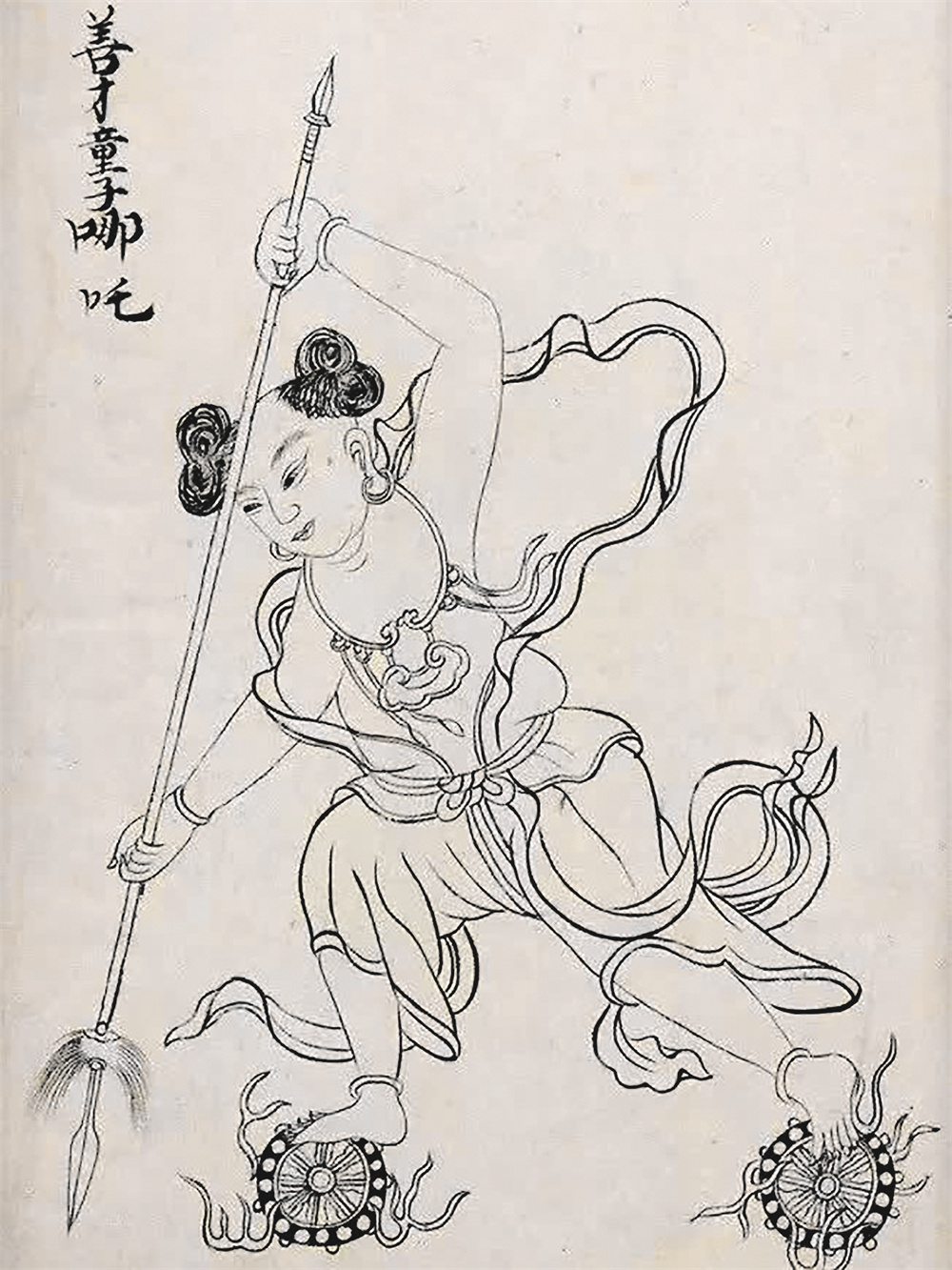 清代墨绘本《封神真形图》中的哪吒画像