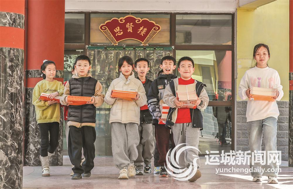 2月15日,盐湖区魏风小学的小学生领取新课本,将开启新学期新生活。