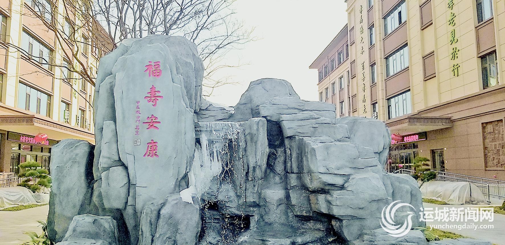 从运风高速路进入永济,由去往晓朝村的大路向东,在第一个大路口向南,几幢建造雅致的楼宇赫然映入眼帘。从大门进去,一块书写着“福寿安康”的巨石旁,水流潺潺,展现着建设者的一片匠心。