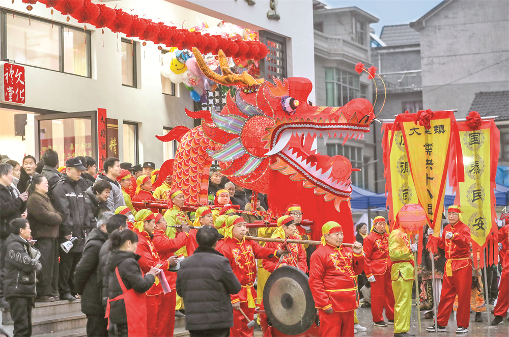 当日是农历正月十八,浙江省杭州市淳安县大墅镇儒洪村迎来了热闹的“赶十八”民俗市集。村民和游客一起观看唱大戏、跳竹马、舞龙灯、猜灯谜,共同感受这个传统民俗的魅力。
