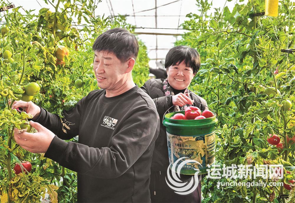 2月19日,游客在万荣县一大棚蔬菜种植基地采摘西红柿。