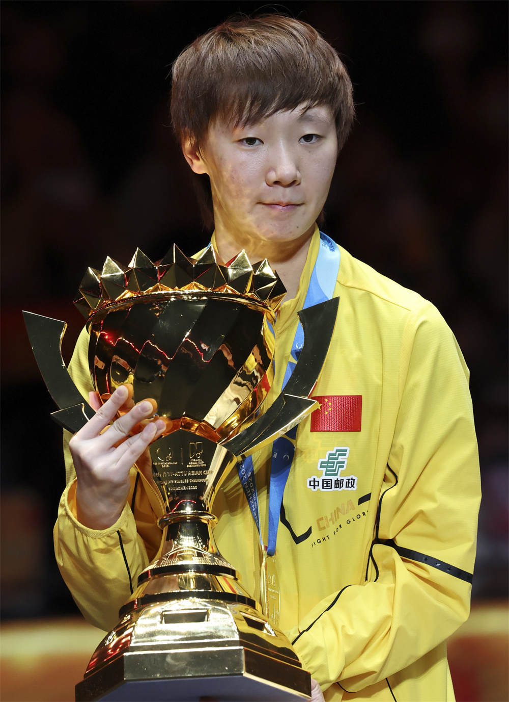 当日,在广东深圳举行的第34届国际乒联-亚乒联盟亚洲杯女子单打决赛中,中国选手王曼昱4比0战胜队友孙颖莎,夺得冠军。