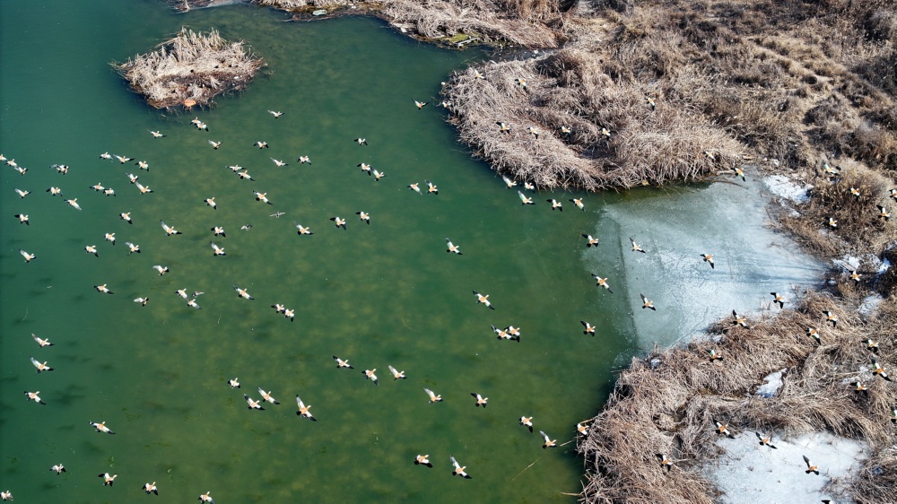 随着天气逐渐转暖,黄河宁夏段迎来众多候鸟驻足。近年来,宁夏全力推动黄河流域生态保护和高质量发展先行区建设,黄河及两岸湿地的保护力度不断加大,生态环境持续向好,黄河两岸的滩涂、湿地已成为候鸟重要的补给站、栖息地。