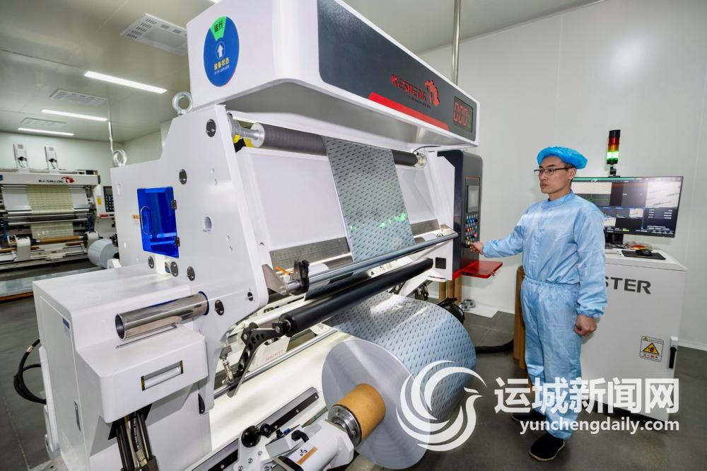 2月28日,盐湖区国森彩印有限公司的生产车间,工人在生产药用复合膜。