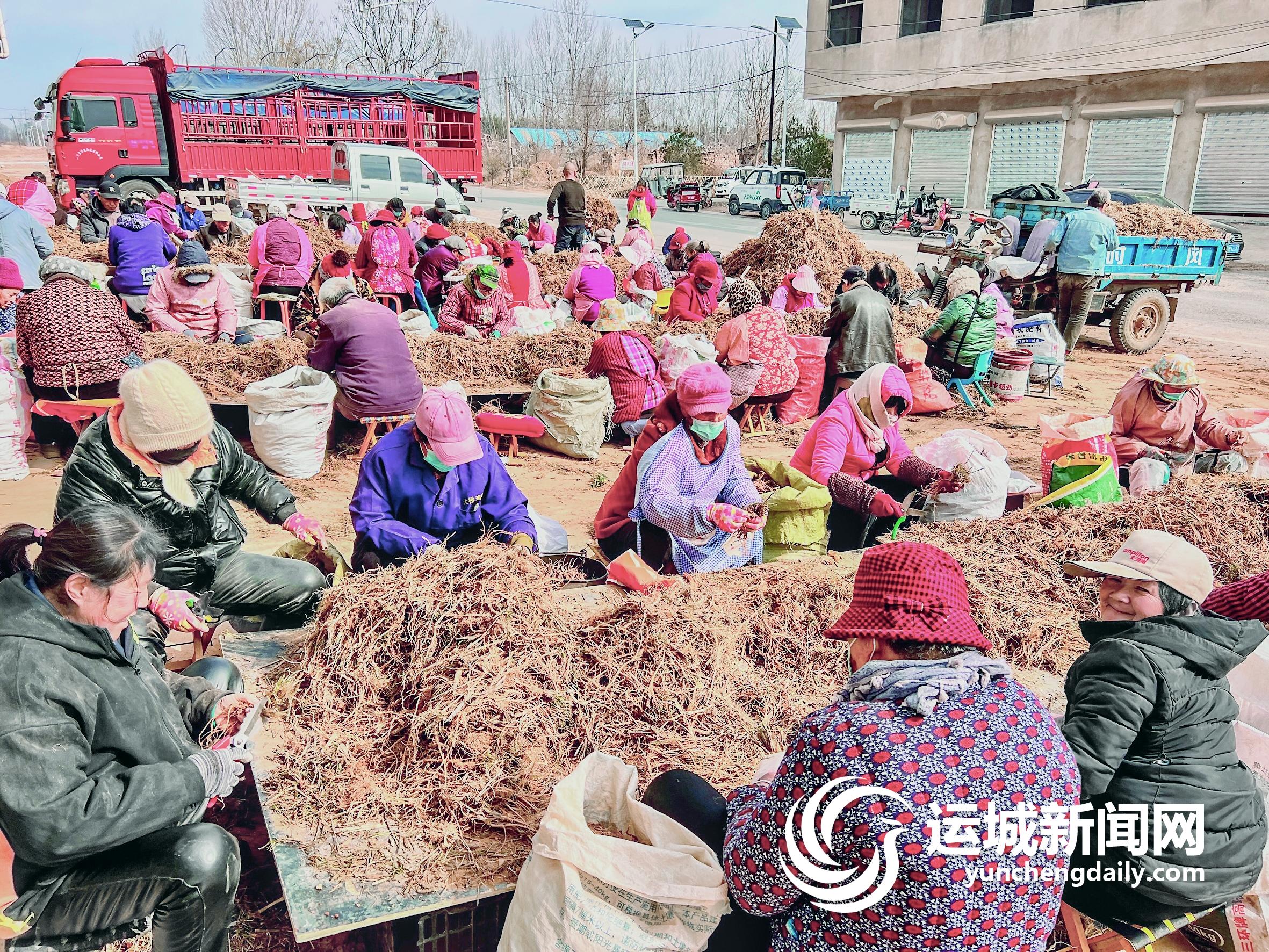 2月27日,平陆县张店镇群众抢抓晴好天气,采挖、分拣、晾晒中药材柴胡。