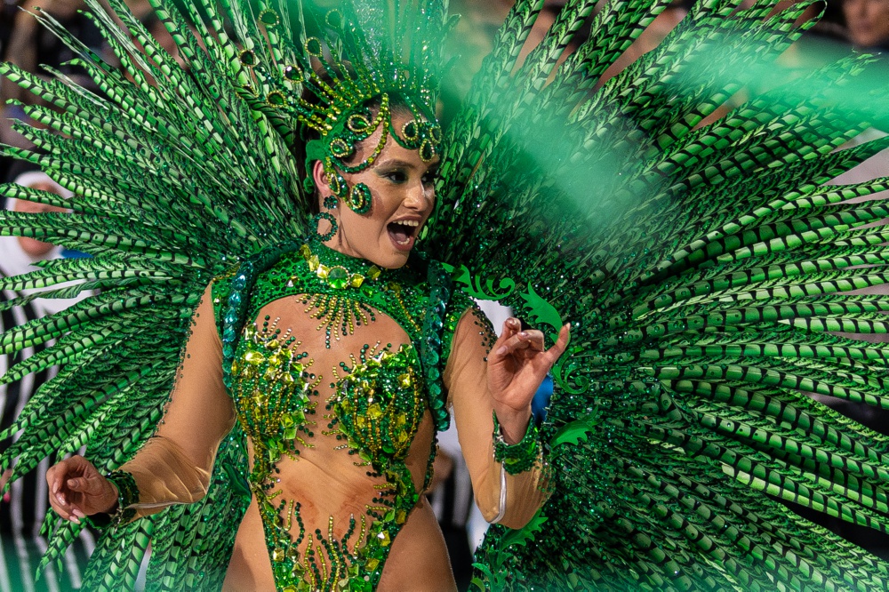2月28日,在巴西里约热内卢桑巴大道,桑巴舞校的演员参加狂欢节游行。当天,巴西里约热内卢市长爱德华多·帕埃斯在里约市长宫将一把象征城市管理权的金钥匙交给“狂欢节国王”,标志着2025年里约狂欢节正式拉开帷幕。 新华社发
