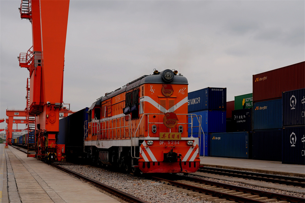 2024年11月16日,中欧班列在中铁联集武汉中心站进行出发前的准备。 新华社记者 邢广利 摄