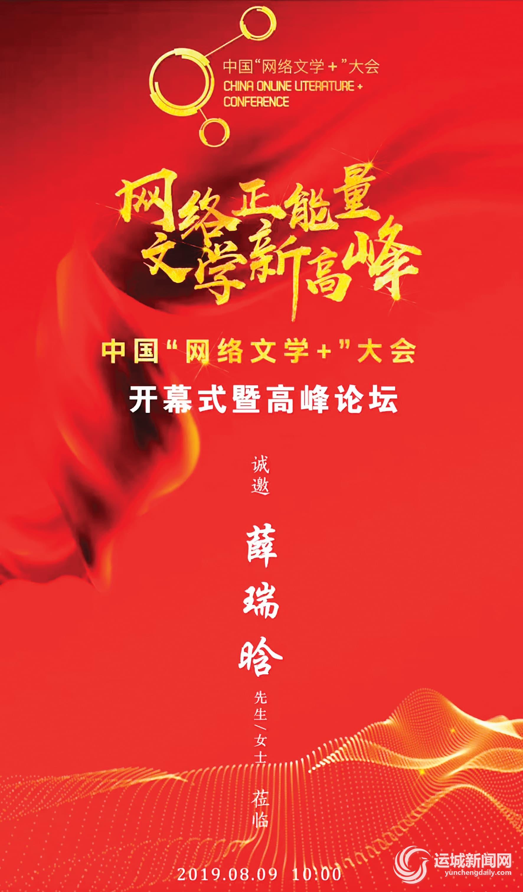 薛瑞晗被邀参加中国“网络文学+”大会开幕式