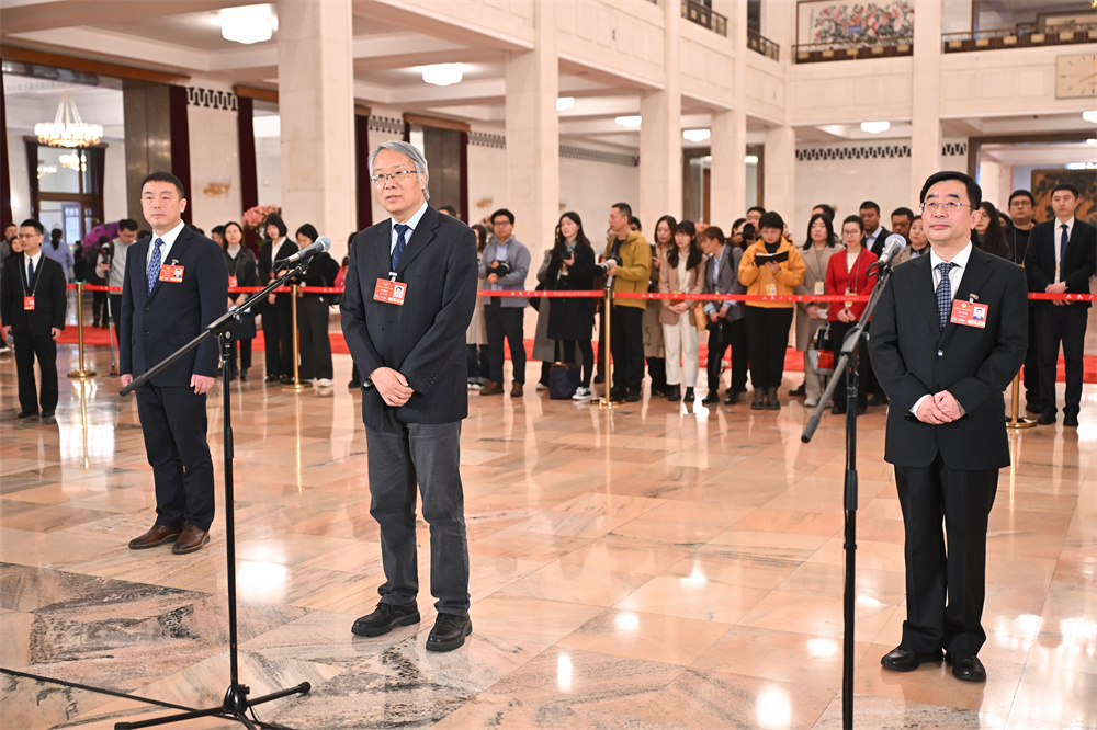 3月10日,全国政协十四届三次会议第三场“委员通道”集体采访活动在北京人民大会堂举行。 新华社记者 金良快 才 扬 摄