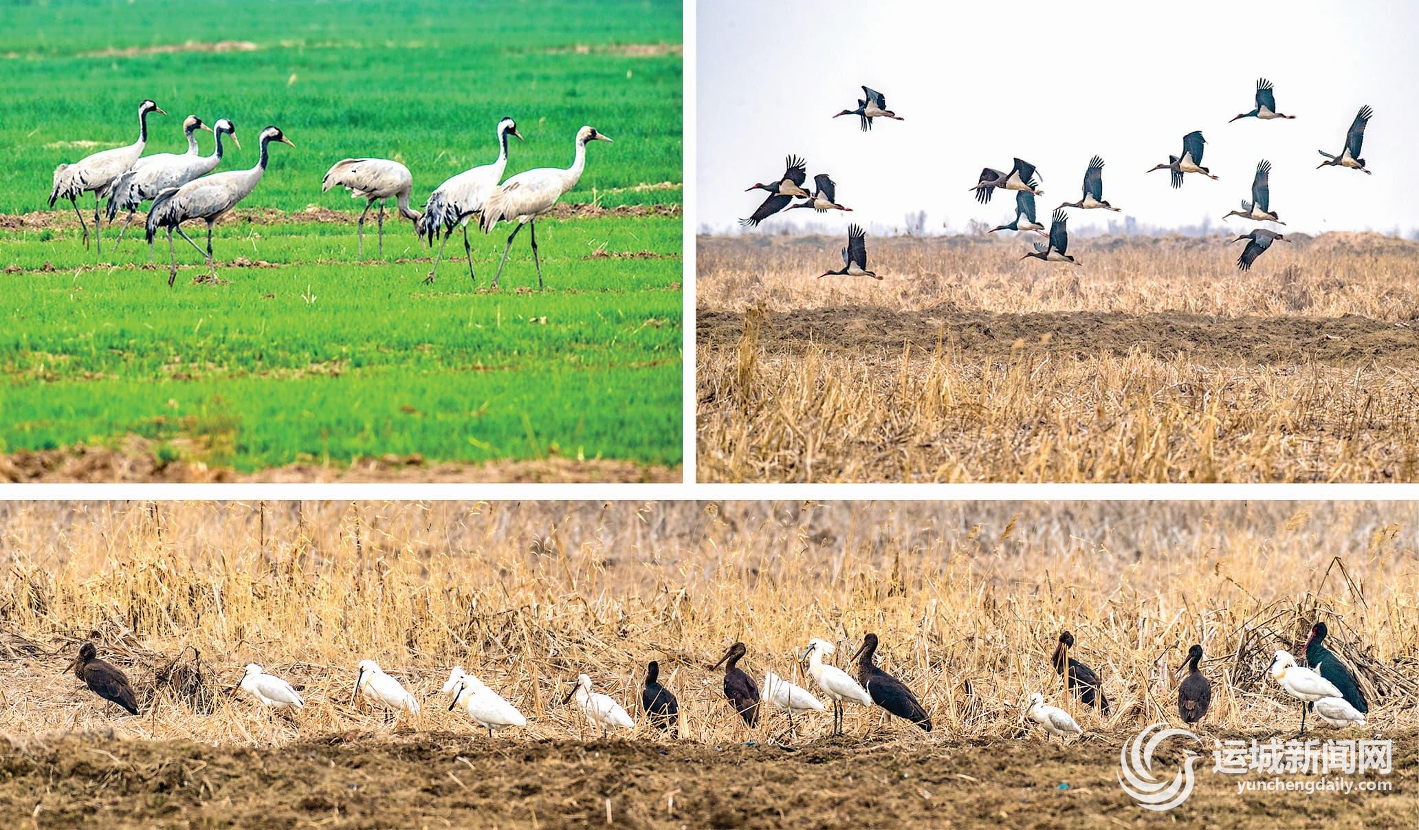仲春时节,数千只灰鹤、黑鹳、琵鹭等国家级保护鸟类聚集永济黄河湿地。它们或觅食、或嬉戏、或飞翔,成为黄河湿地一道亮丽风景线。 记者 薛俊 摄