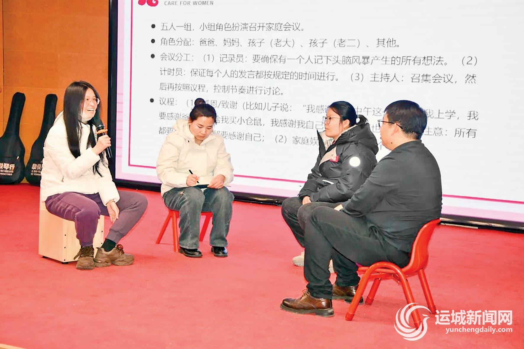 讲座中,高伟峰老师从“女性在家庭中的特殊地位、当代女性必备的领导力、提升领导力的三个抓手”三方面展开讲解。用具体事例印证女性在家庭教育中的重要性,肯定在家庭治理中女性有着明确的领导者角色,并采用“家庭会议”的互动形式,生动形象地再现了如何落实“感恩、建立公约和家务分工”这三个有力抓手,为女性拥有独特领导力提供有力保障。