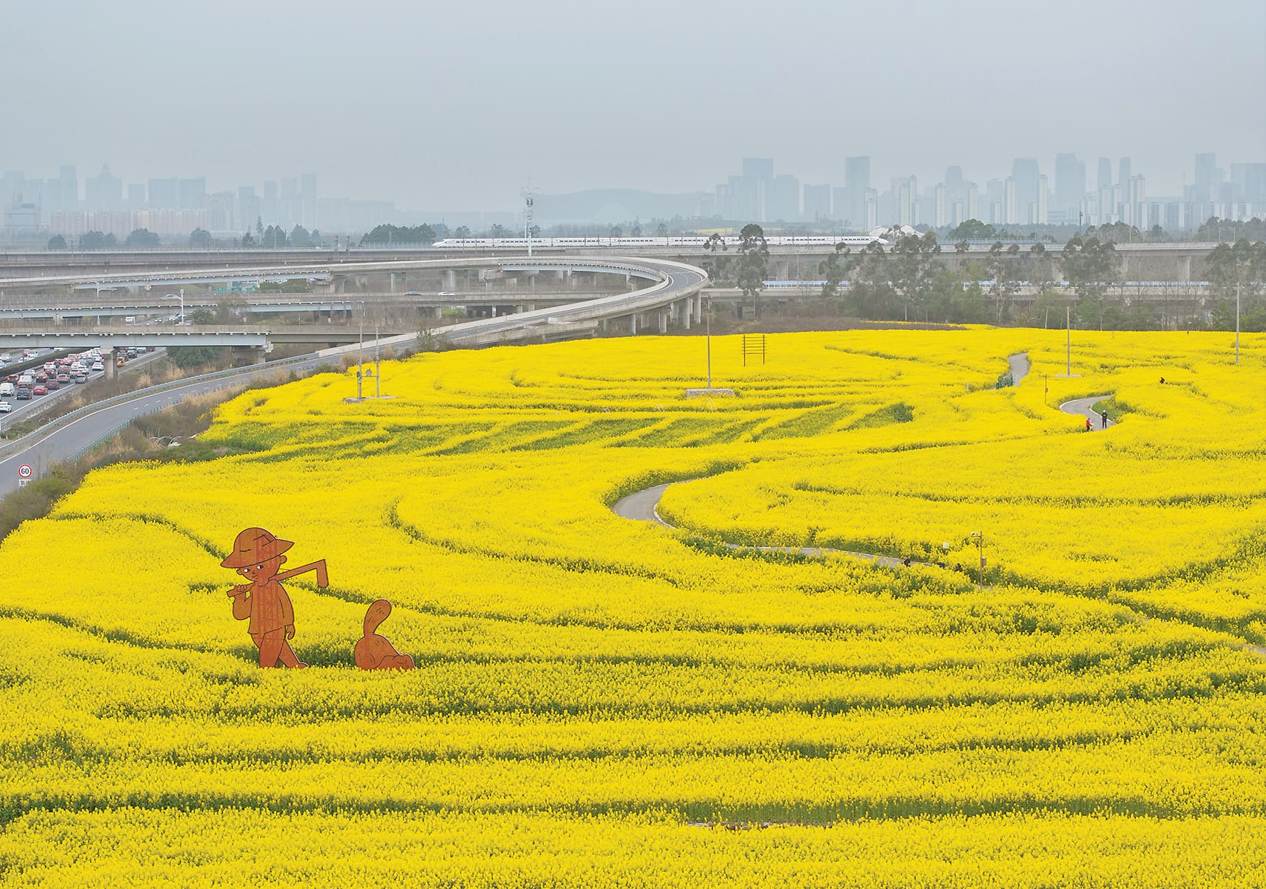 3月13日,成都市锦江区三圣街道的油菜花田。春回大地,成都市环城生态区的油菜花陆续进入盛花期。 新华社记者 江宏景 摄