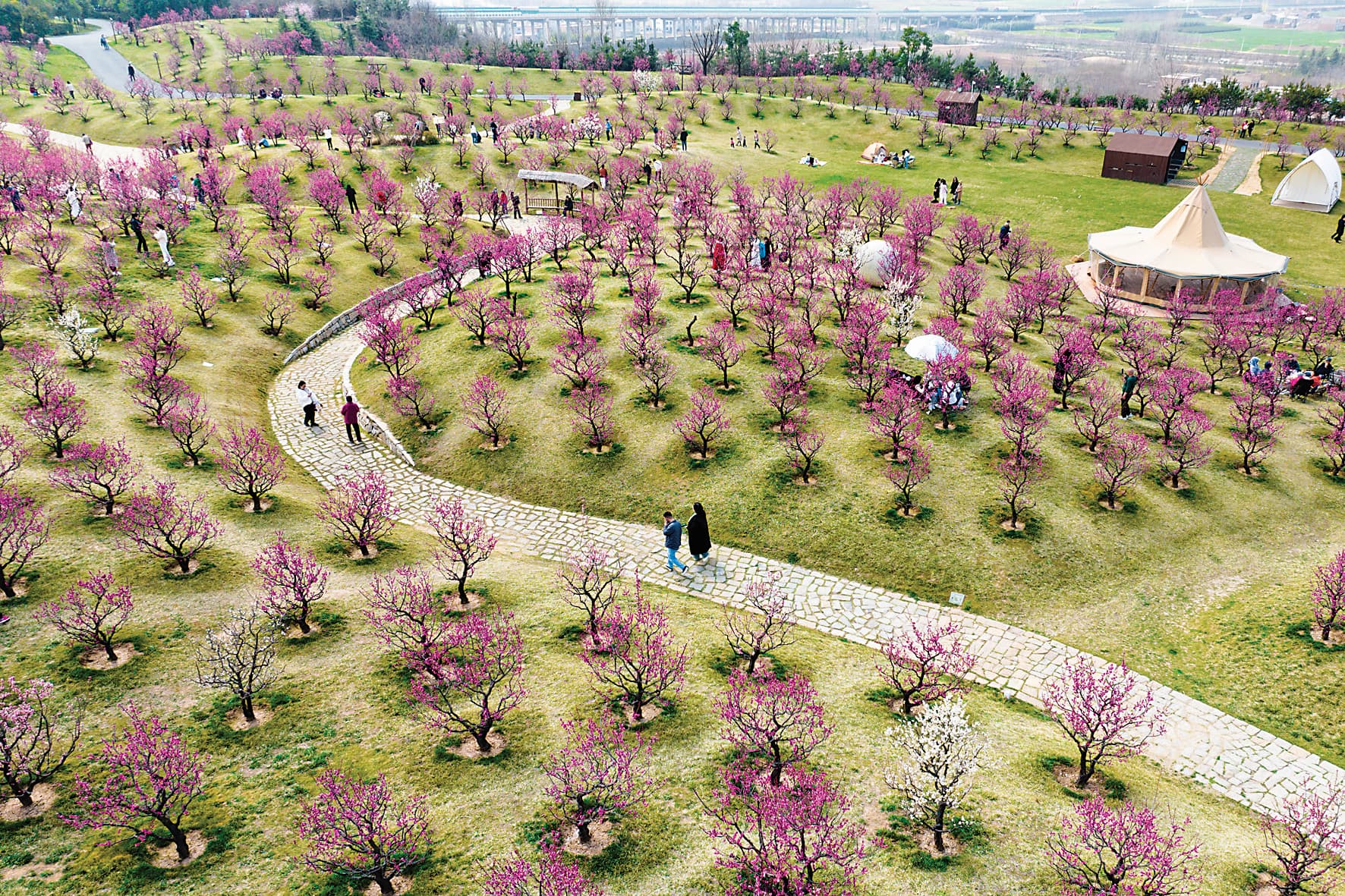 3月13日拍摄的陕西省西安市长安区长安唐村景区的梅花景色。 新华社记者 邵瑞 摄