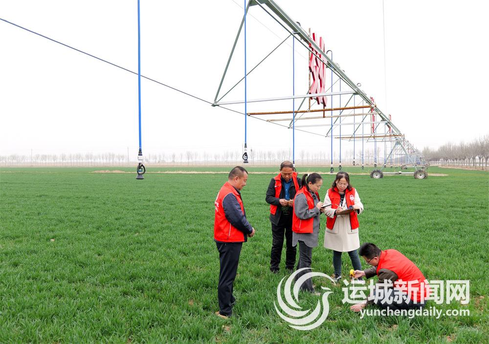 近期永济市冬小麦进入返青期,也是水肥高需求期和产量形成关键期,农业技术人员组成志愿服务队,在永济市对冬小麦株高、密度、分蘖数进行对比测量,察看土壤墒情、病虫害等情况,并根据苗情,指导农户做好追肥、浇水、病虫草害防治等工作,全力确保夏粮丰收。