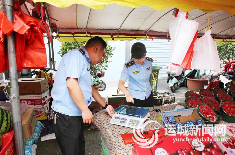 市市场监督管理局计量科工作人员在盐湖区东湖农贸市场检查商贩的称重器具。(资料图片)