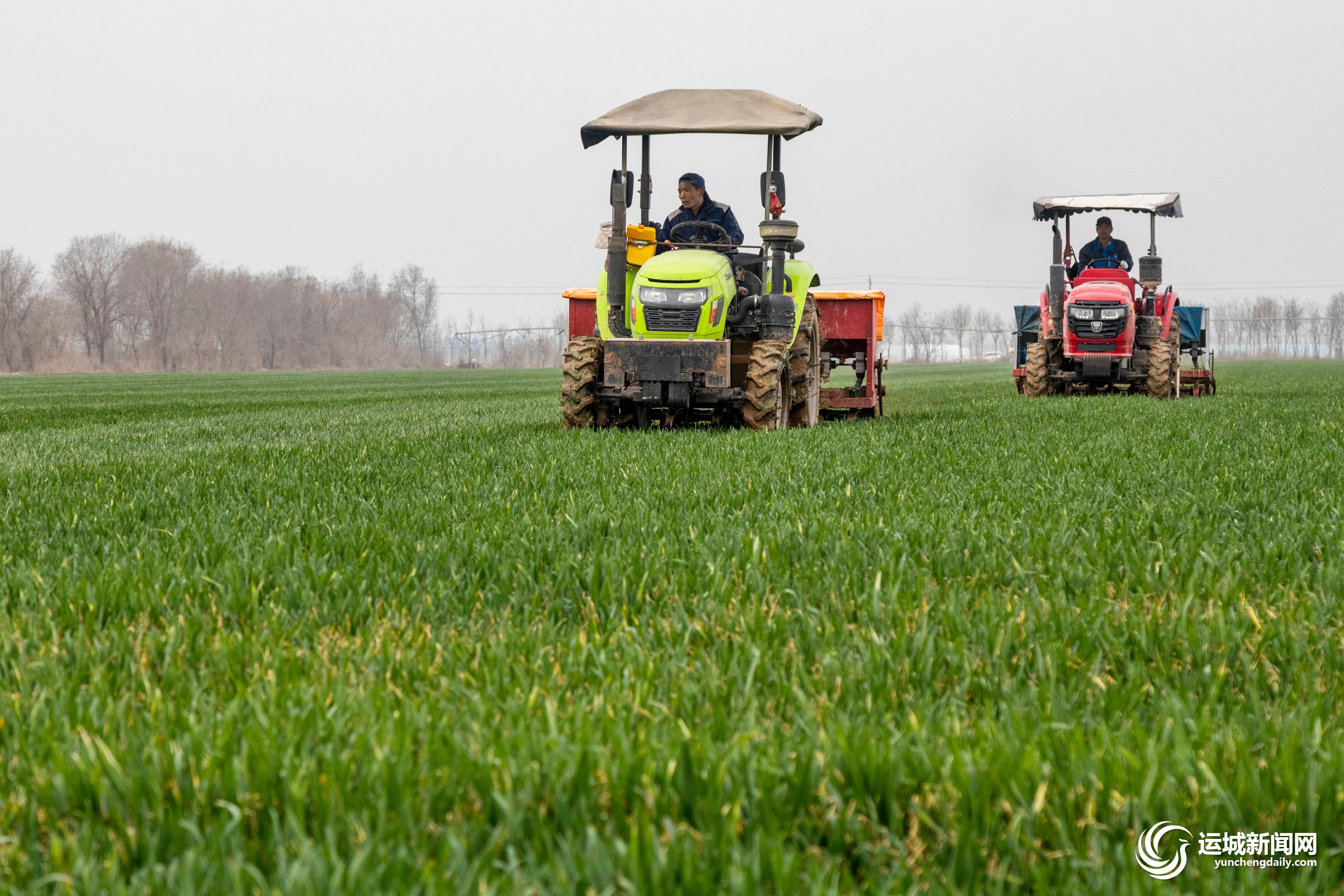 3月12日,永济董村农场麦田里,农技人员驾驶农机进行施肥作业。 特约摄影 刘立新 摄