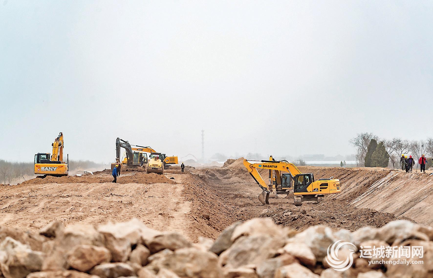 3月13日,姚暹渠(永济段)改造工程施工现场机械轰鸣,施工人员全力奋战,推进泄洪排涝工程改造。