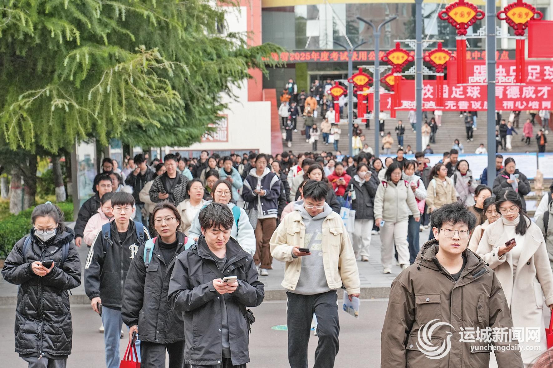 3月15日,山西省2025年度考试录用公务员笔试正式开考,运城市各个考点秩序井然。图为考生走出运城中学考点。