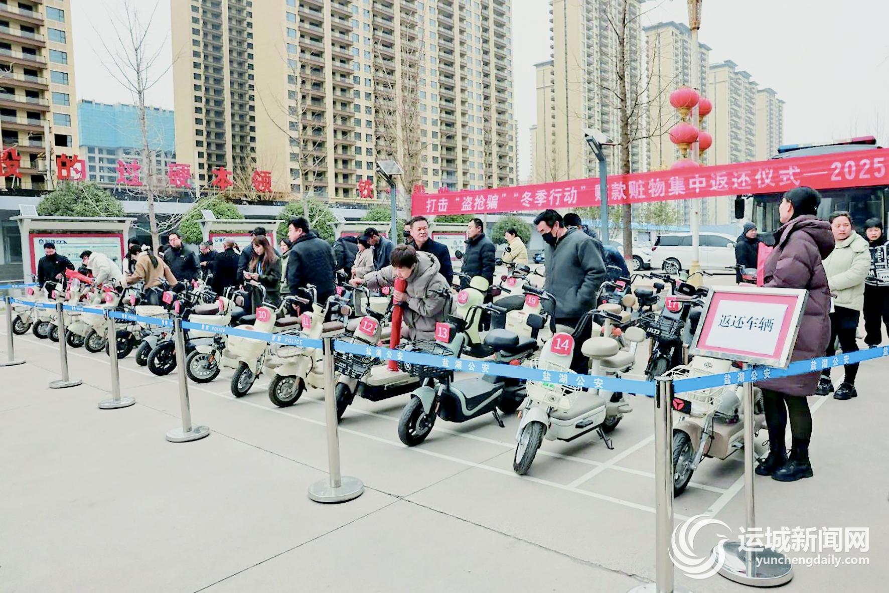 本月初,在盐湖公安分局举行打击“盗抢骗”“冬季行动”赃物赃款集中返还仪式中,该局相关负责人出席活动并给失主发还钥匙,也通过仪式进一步震慑侵财类违法犯罪,郑重告诫违法犯罪分子,莫伸手、伸手必被抓。希望广大群众做懂法守法公民,积极检举违法犯罪线索,警民携手推进更高水平的“平安盐湖”建设。