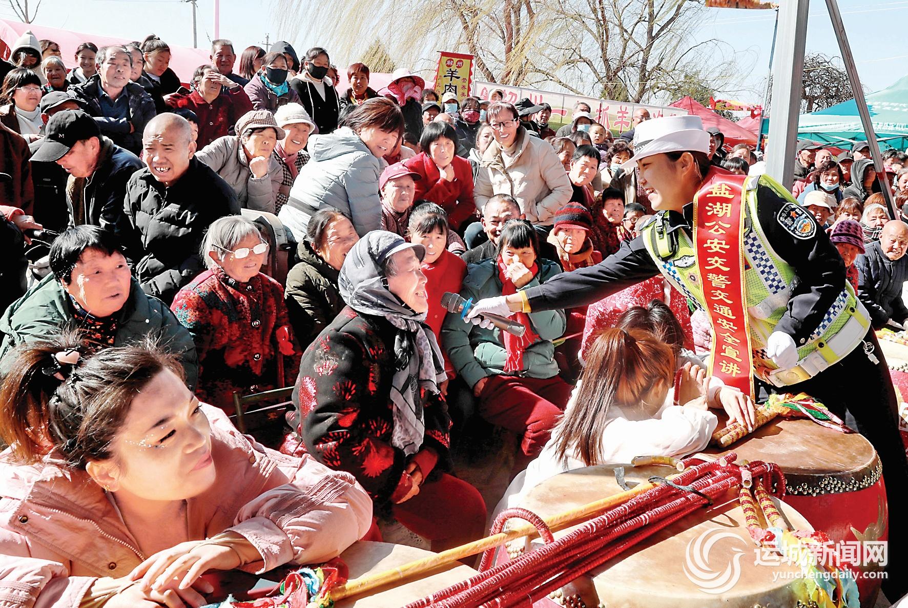 市公安局盐湖分局交警大队宣传科民警日前走进金井乡卫褚村开展“美丽乡村行”交通安全巡回宣讲暨春耕主题宣传活动。活动中,宣传民警利用警车大喇叭、摆放交通事故警示录展板、开展安全有奖问答、粘贴安全即时贴等形式,向群众讲解骑乘电动车、摩托车不佩戴安全头盔,农用三轮车违法载人,面包车超员,酒醉驾驶等交通违法行为的危害性,引导大家自觉遵守交通法律法规。