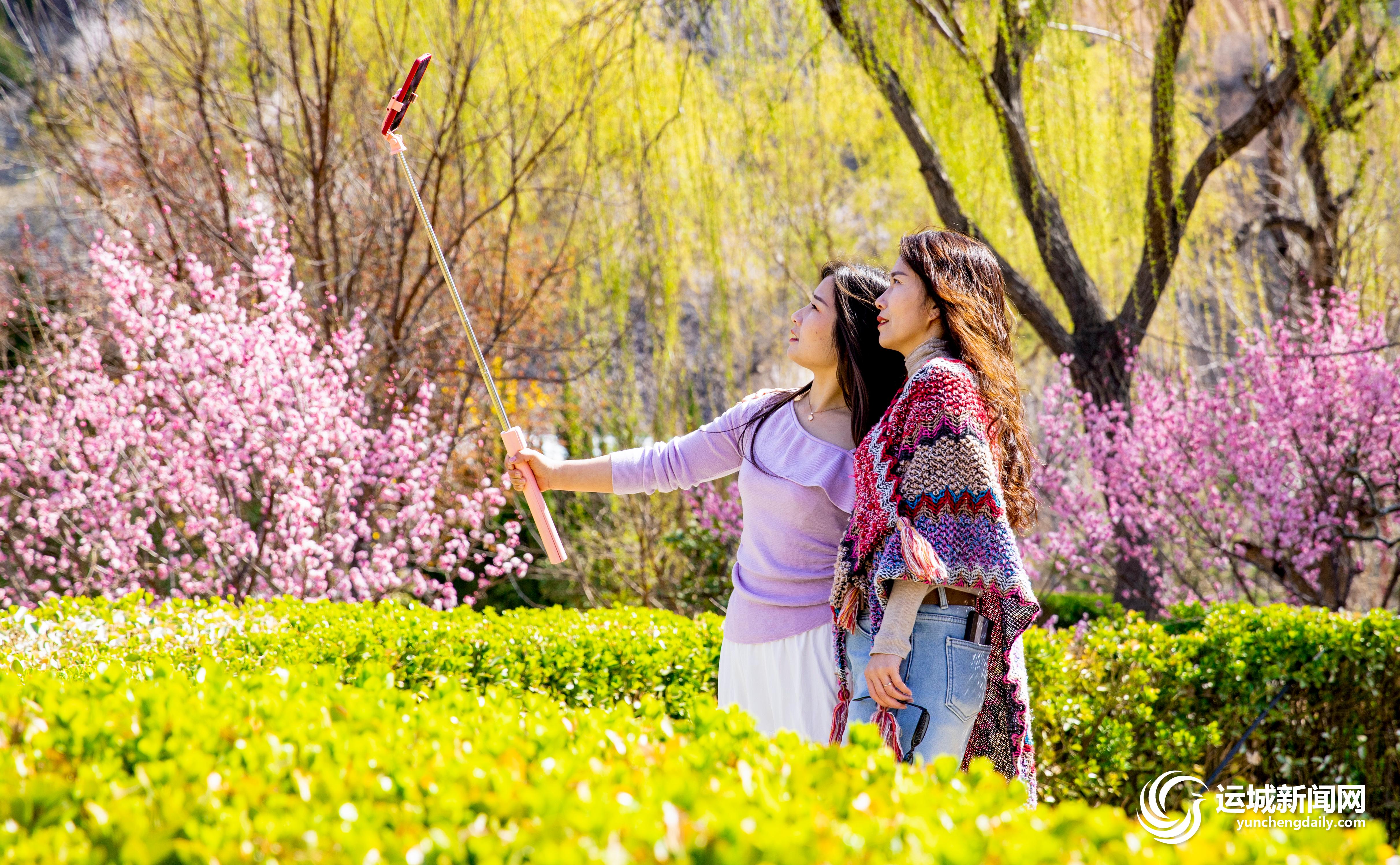 3月18日,游人在夏县温泉附近的“梅花谷”游玩赏花。