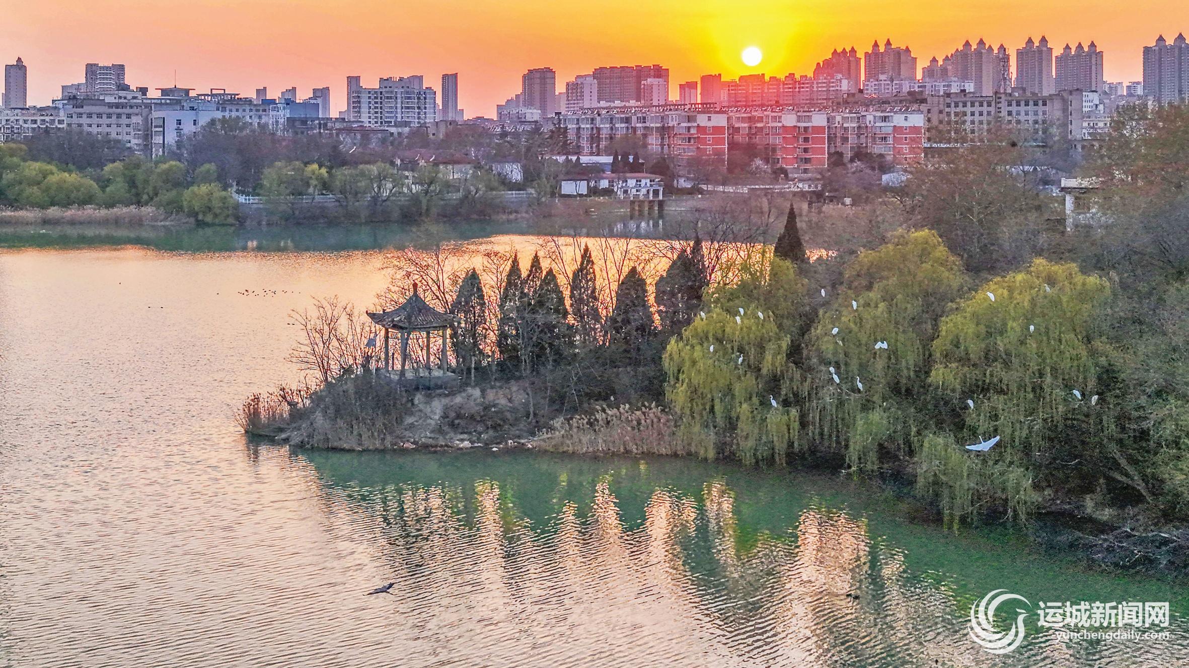 3月19日,中心城区新开放的舜风公园在晚霞的映衬下美如画。该公园是官道河生态修复和整治工程项目的重要组成部分,利用安邑水库良好的生态资源,搭建亲水休闲娱乐平台,打造城市水系生态廊道,助力建设富裕、文明、幸福的好运之城。
