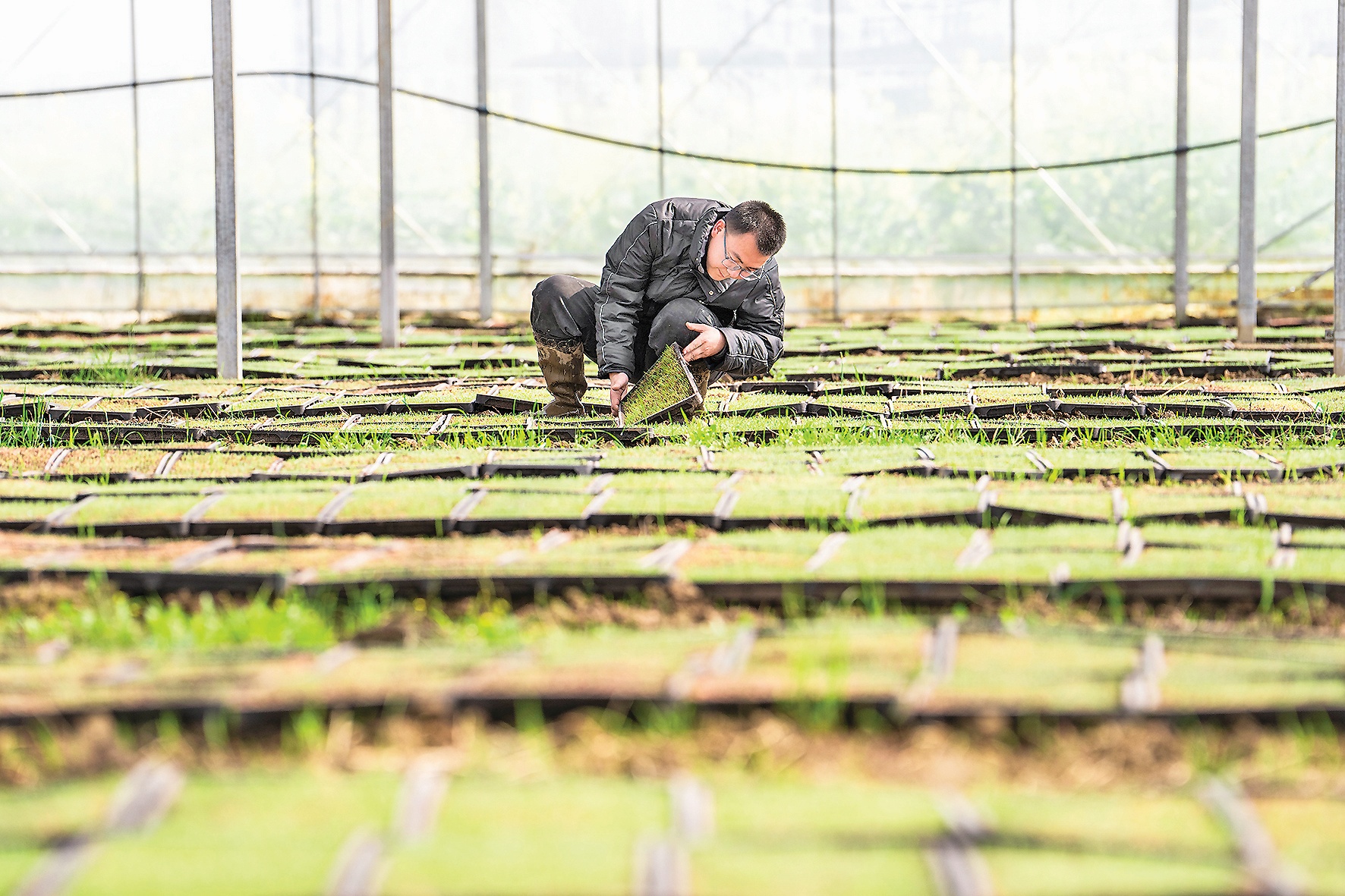 3月20日,在湖南省常德市汉寿县岩汪湖镇红菱湖村,农民在搬运配置好的水稻秧盘。 新华社记者 陈思汗 摄