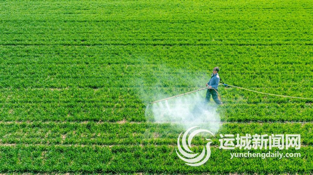 3月20日,盐湖区解州镇西膏腴村村民抢抓有利时机,实施田间小麦“一喷三防”作业,确保夏粮丰产丰收。