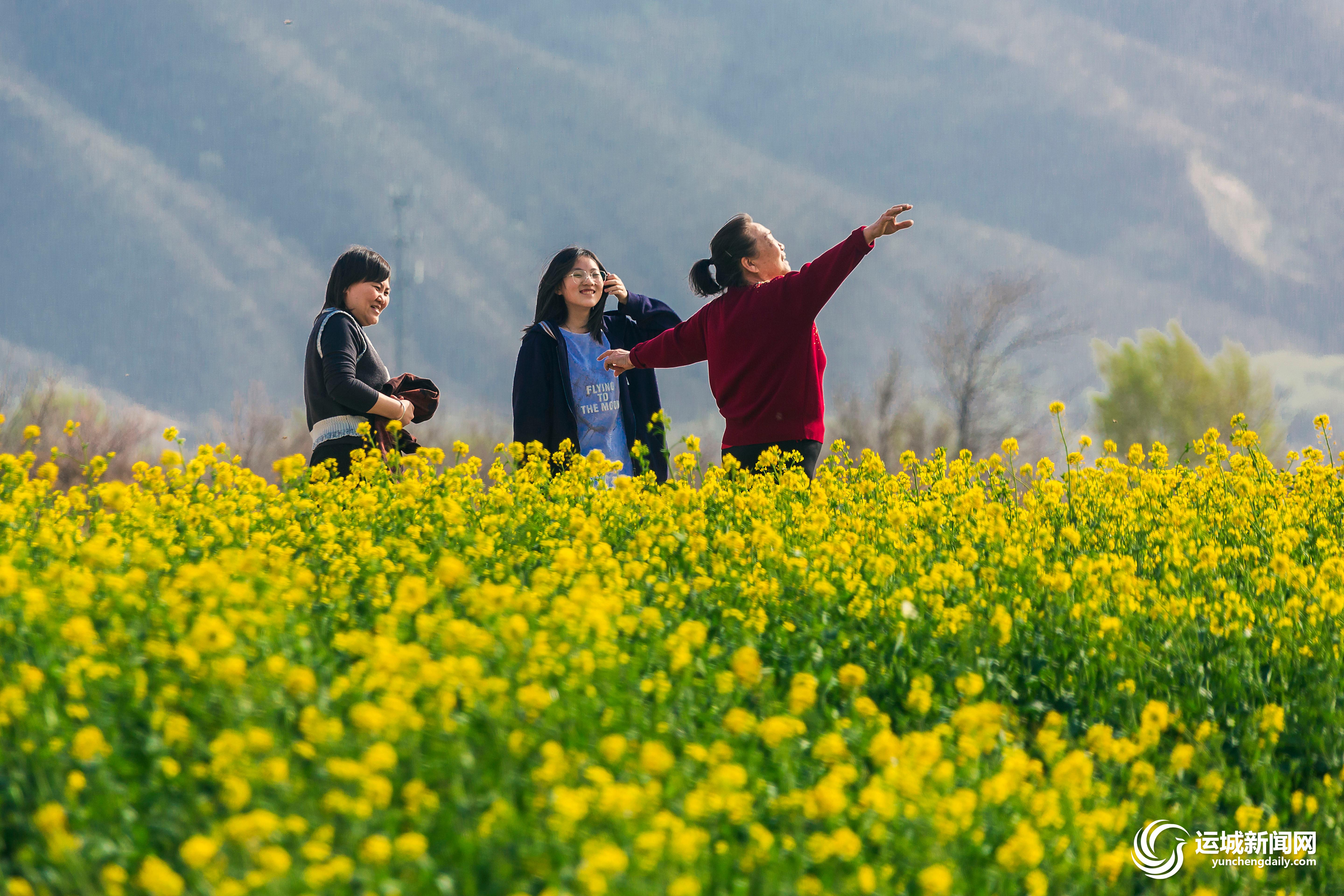 眼下春暖花开,盐湖区中条山下,大片黄灿灿的油菜花竞相绽放,花香四溢,吸引了众多市民前来踏青赏花,感受春天的气息。