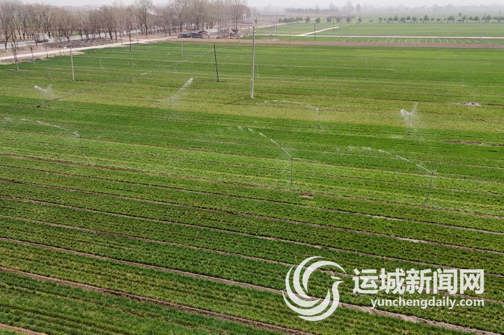 3月25日,闻喜县河底镇冯村的高标准麦田里,喷灌设施在作业。这种节水喷灌方式为小麦低投入、高收益提供了现代化保障。