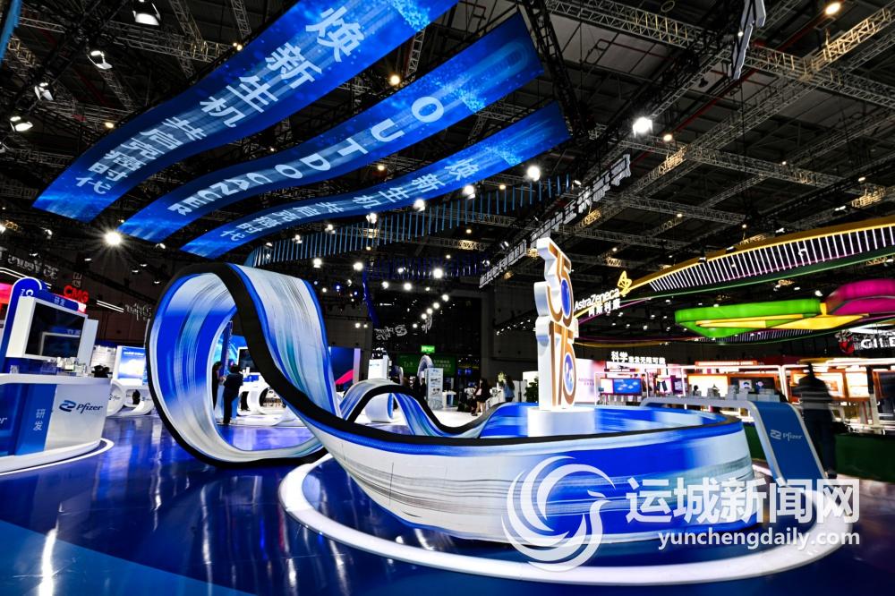 这是2024年11月8日在第七届进博会医疗器械及医药保健展区拍摄的辉瑞展台。 新华社记者 辛悦卫 摄