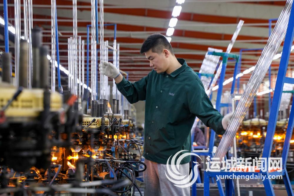 3月29日,运城市宏光医用玻璃股份有限公司生产车间内,工人正在生产订单管制瓶产品。