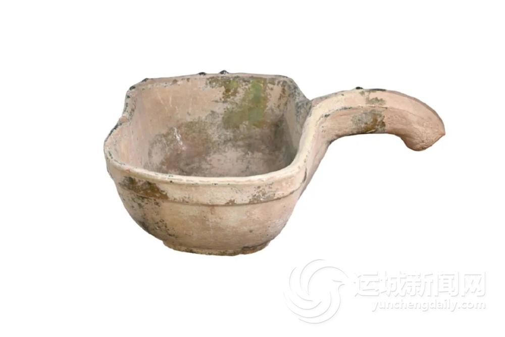 盐湖区博物馆珍藏的这件东汉绿釉陶魁,是汉代河东地区先民日常生活中饮食文化的重要反映,为后人研究汉代魁的形制和价值提供了重要的实物资料。这件陶魁为红陶所制,通体施绿釉,给人一种质朴大气的感觉。整个器身形制规整,线条流畅、自然、丝滑,最具特色的当属那前低中高尾部自然垂落的柄,虽然不是龙首形,但独特的巧思方便人们握住,彰显了当时工匠制作时的贴心与匠心,让人不禁慨叹古人的非凡智慧。绿釉陶器是汉代发明创烧的新品种,是古代低温铅釉技术发展的杰作,上承商周瓷器的施釉技术,下启唐宋三彩器的瑰丽多姿,具有重要历史意义,体现了当时工匠在釉料制作工艺上的精湛技艺。历经一千多年的岁月洗礼,这件陶魁身上的绿釉虽然早已斑驳,但依旧散发着独特的韵味,成为东汉时期人们生活风貌、文化传承等方面的生动写照,如今依旧光彩夺目。