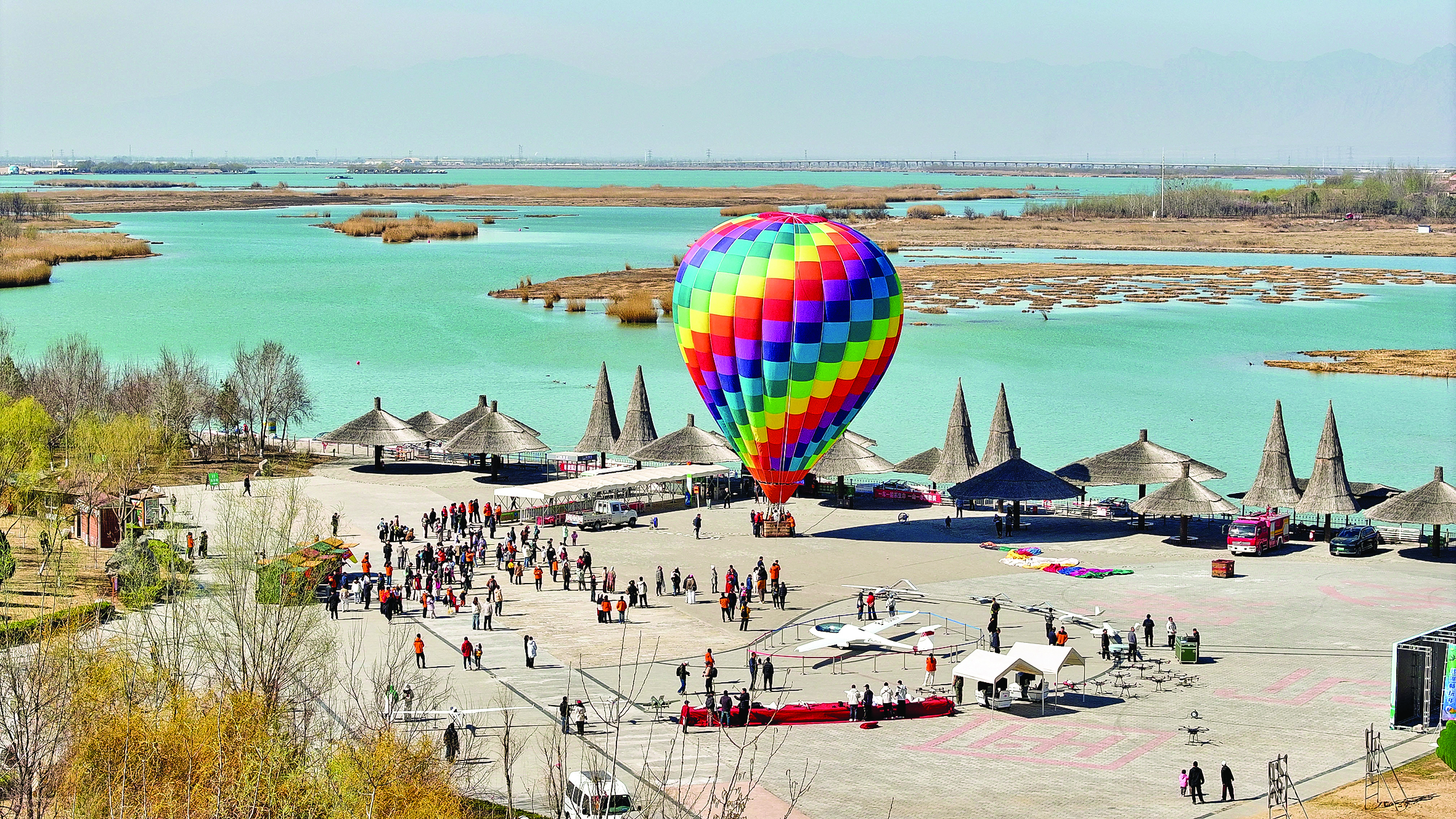 当日,宁夏沙湖景区举行“出湖入海 逐浪四季”旅游主题系列活动,数千名游客齐聚沙湖,共同体验低空经济、沙雕制作、垂钓竞技等文旅活动。