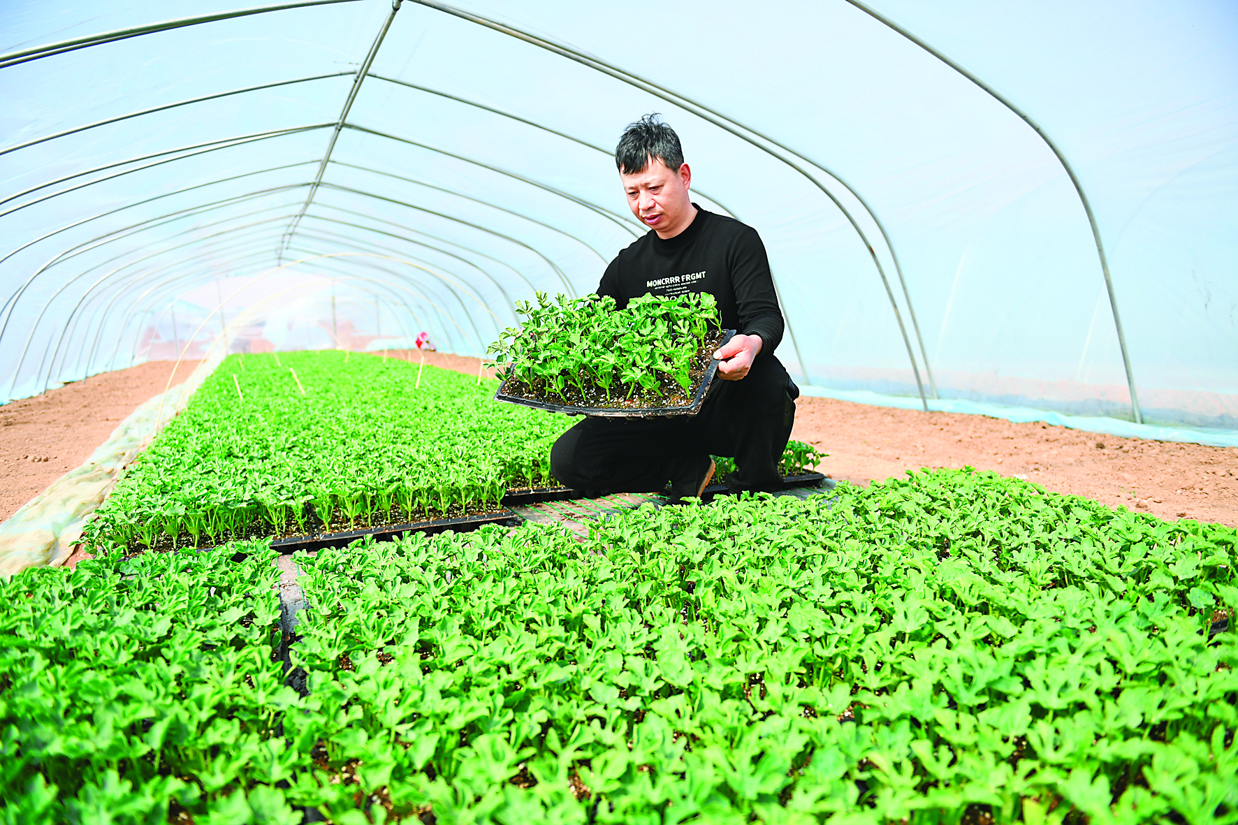 3月31日,稷山永昌种植农场的工人在西瓜种植基地大棚里栽种西瓜苗。近年来,稷山永昌种植农场持续在特优农业上做文章,共流转土地360余亩,搭建西瓜大棚850个,建设优质西瓜种植基地。