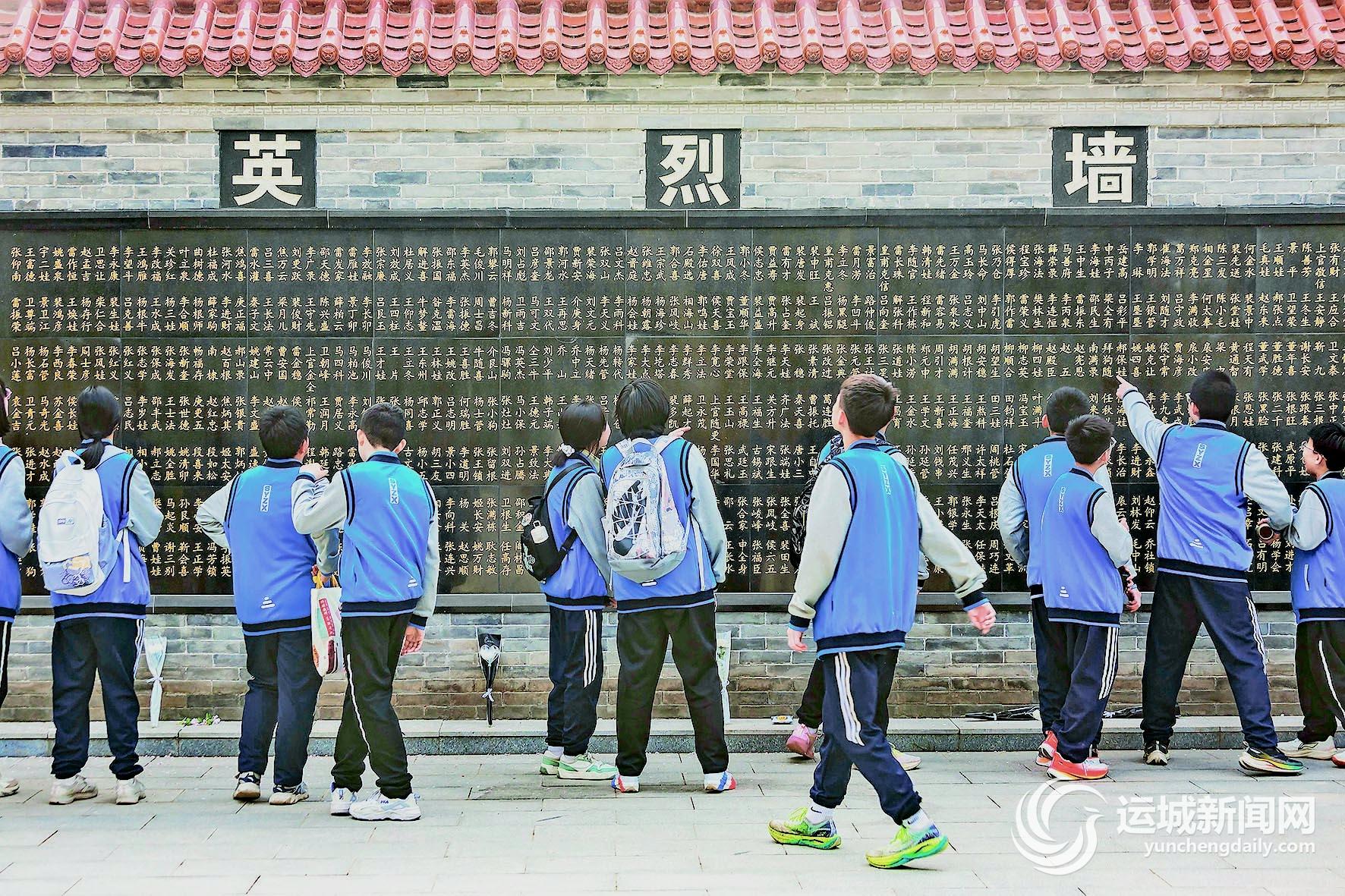 3月31日,学生在盐湖区烈士陵园瞻仰英烈墙。