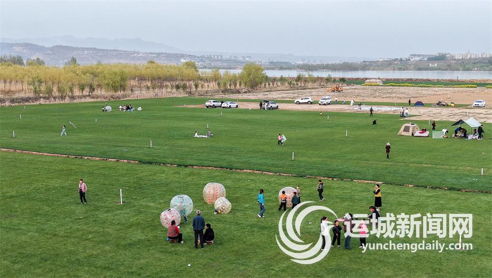 4月5日,平陆县张村镇黄河岸畔,游客在露营游玩,乐享假日春光。记者 金玉敏 摄