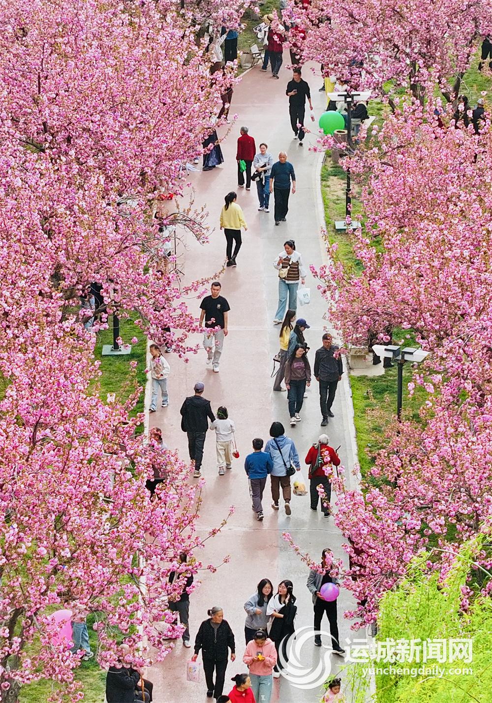 4月4日,永济市樱花园的樱花竞相绽放,吸引众多市民观赏打卡。 记者 常 奇 摄