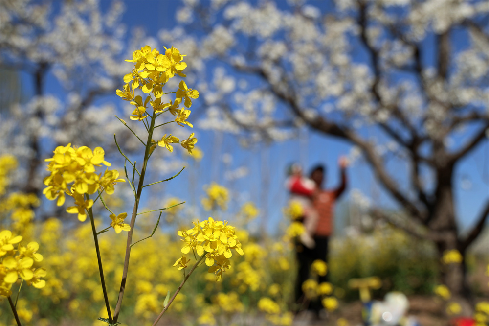 4月5日,游客在河南省安阳市内黄县东庄镇梨花园踏青赏花。 新华社发(刘肖坤 摄)