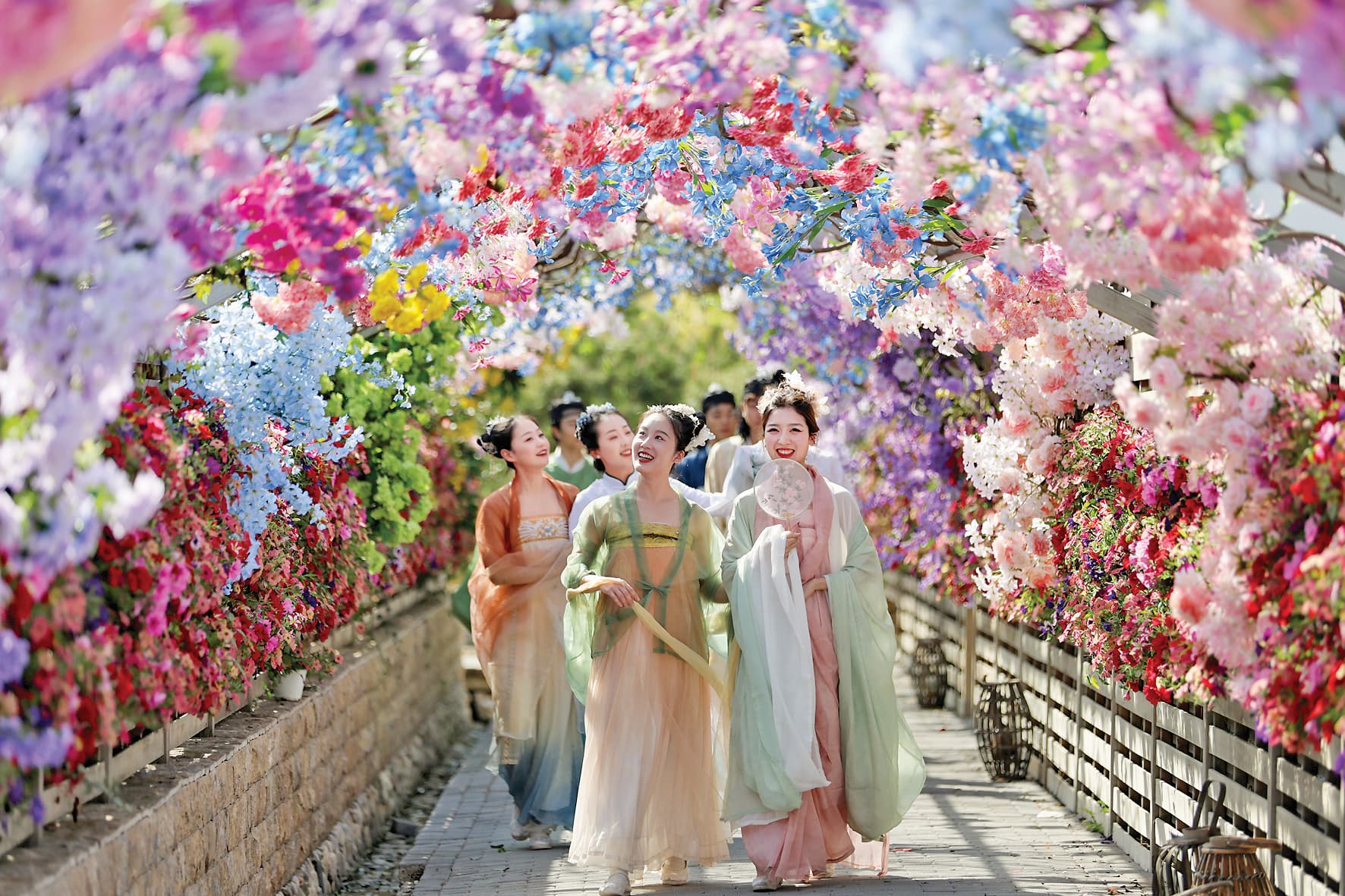 4月6日,在山东省郯城县醉东风乡村艺栈,身着传统服饰的演员为游客表演。 文化和旅游部4月7日公布2025年清明节假期文化和旅游市场情况。经测算,假期3天,全国国内出游1.26亿人次,同比增长6.3%;国内出游总花费575.49亿元,同比增长6.7%。新华社发(张春雷 摄)